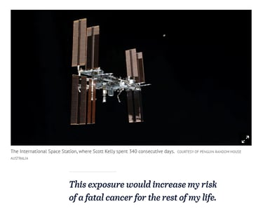 More troubling, I experienced problems with my vision, as many other astronauts had. I had been exposed to more than 30 times the radiation of a person on Earth, equivalent to about 10 chest X-rays every day.