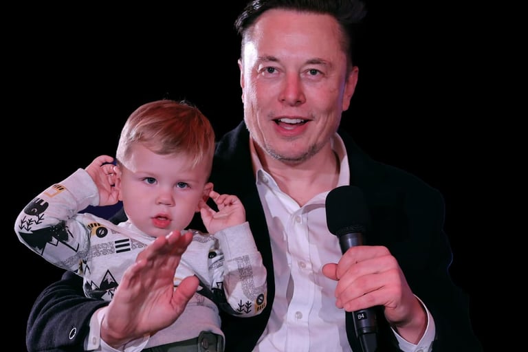 Elon Musk and Canadian musician Grimes have a son named X Æ A-Xii Musk, who was born in May 2020. The name was originally X Æ A-12, but was changed to comply with California law. The child is nicknamed "X".